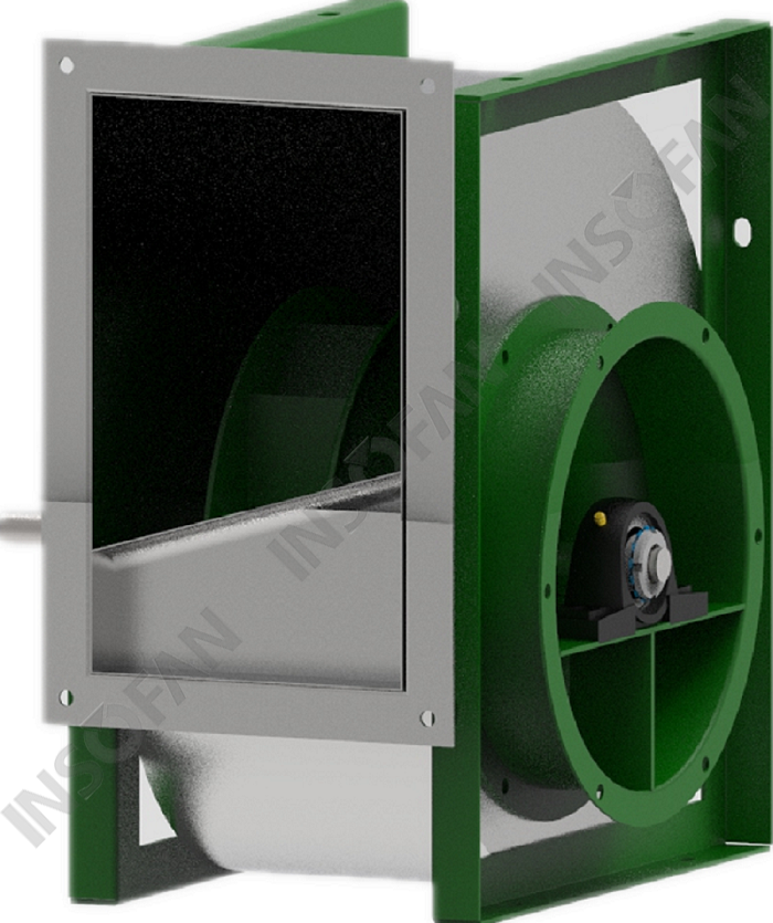 风机应为钢制后弯叶轮单进风离心风机,驱动方式为直联,联轴器或皮带驱动,风机结构应能够允许叶轮方便抽出,以便叶轮维护或清洁。