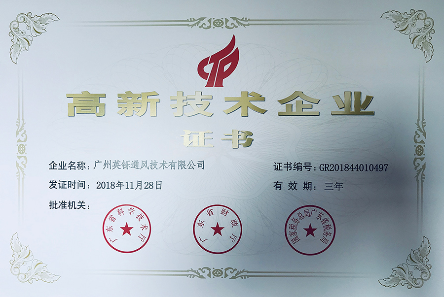 高新技术企业证书
